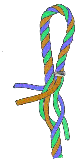 Draai na het afplakken of afbinden van de kardelen van een tros ongeveer 5 slagen uit en bind hier de tros nogmaals af. Leg nu een lus van gewenste grootte en steek een kardeel schuin naar beneden tussen een streng door. Zorg ervoor dat de lus niet tordeert. Haal het markeerbindsel eraf, draai de tros om, en steek in volgorde de andere kardelen onderdoor de strengen zo dat onder elke streng een kardeel uitkomt.